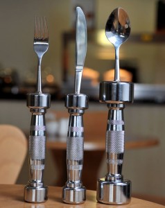 Изобретательные производители столовых приборов в Британии начали продажу в интернет-магазинах вилок, ложек и ножей с ручками-гантелями. Причем, ручки не просто выполнены в форме гантелей, они на самом деле являются гантелями.
